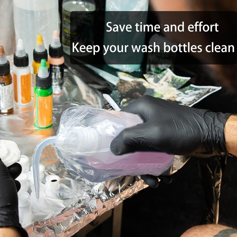 - 🌳Improve efficiency: It is clear and easy to identify the liquid level inside the tattoo wash bottle bags because of high transparency.This is especially important for tattoo artists who need to quickly and accurately replace their ink bottles during a session.