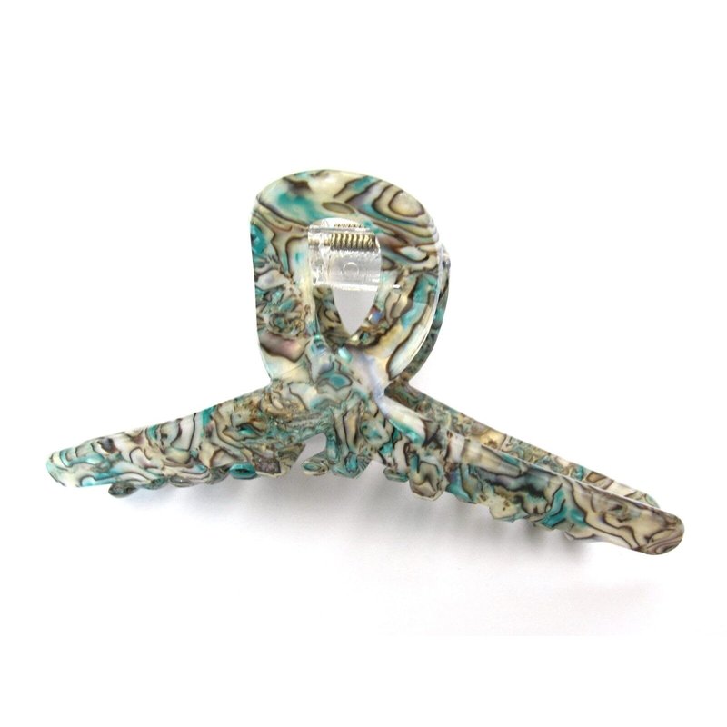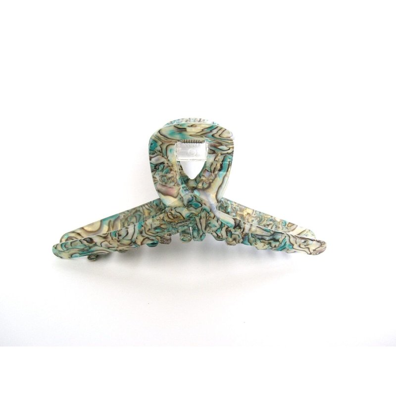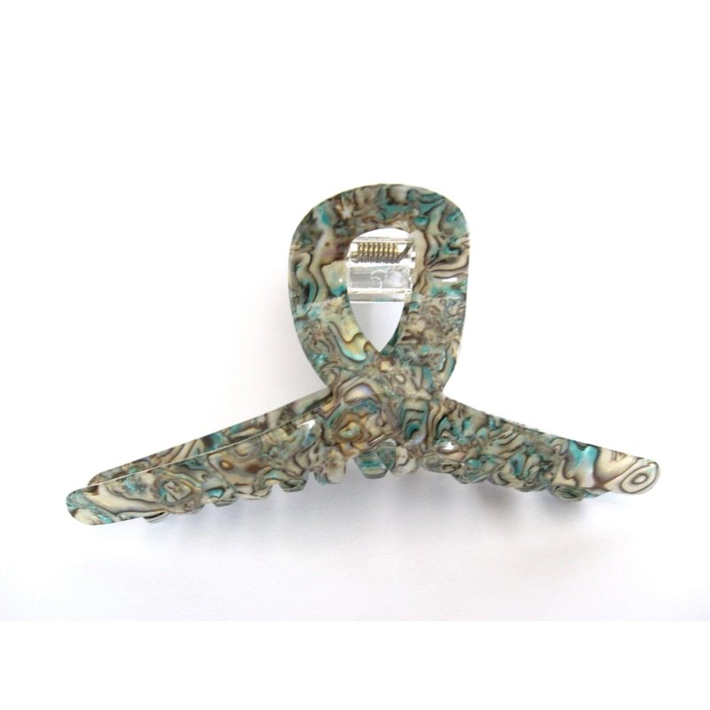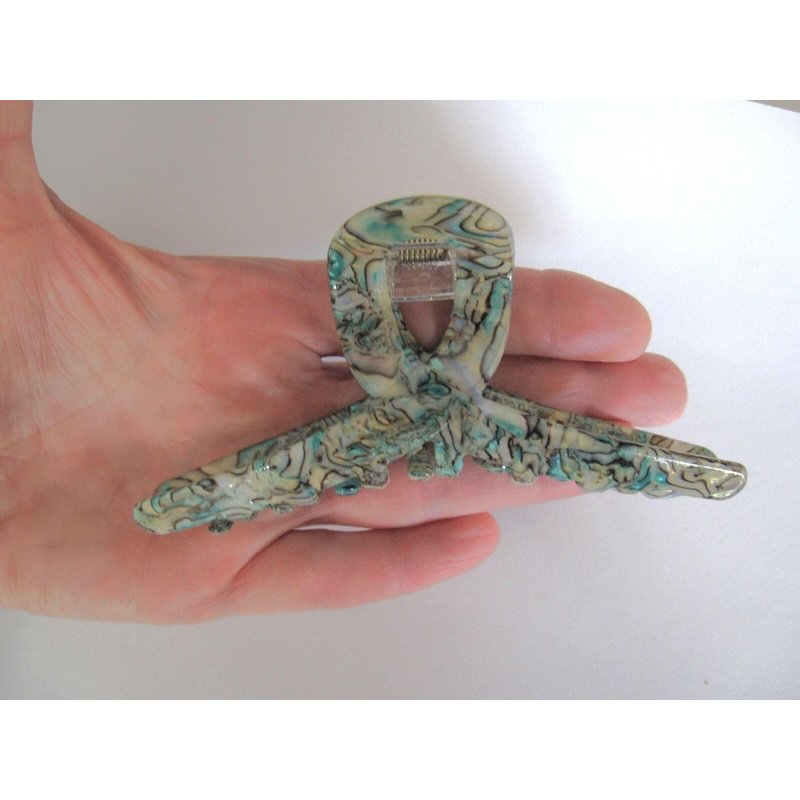 This blue green hair claw has the look of abalone sea shell and is really stunning.