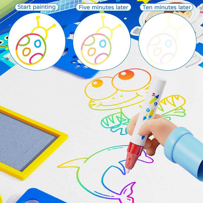 Simple to use:Just add clean water, start doodle on the magic mat.