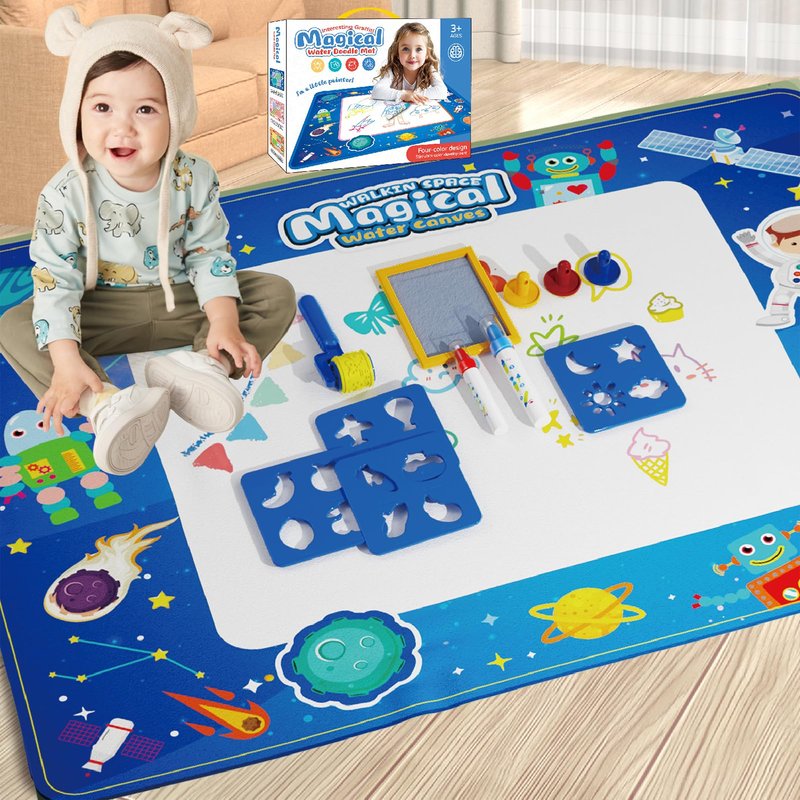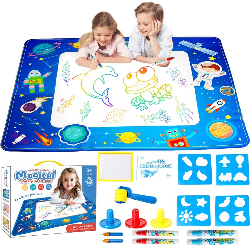 - Kids Painting Writing Doodle Board Toys Set Include:40 x 32 inch Magical Water Doodle Mat x 1,Magic pens x 6,Drawing template x 4,stamps x 4, magic roller x 1,Drawing booklet x 1.