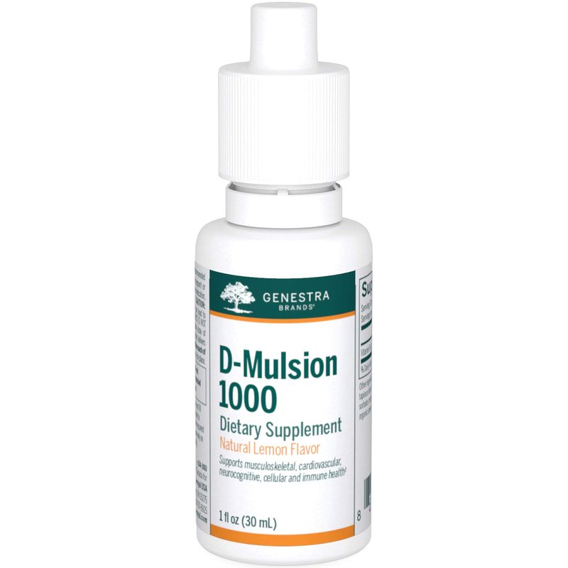 Genestra Brands D-Mulsion 1000 is a great-tasting liquid vitamin D supplement that offers enhanced bioavailability to support your overall health and wellness and comes in a variety of flavors.* Each convenient drop contains vitamin D, which is essential for maintaining a healthy immune system, cardiovascular system, neurocognitive, cellular, and immune health.* You can drop this easy-to-use supplement directly into your mouth or mix it in with drinks for added convenience. The emulsified formula ensures that your body can easily absorb and utilize the vitamin D, which is important for many functions in the body. It's also gluten-free and dairy-free, suitable for those with dietary restrictions.