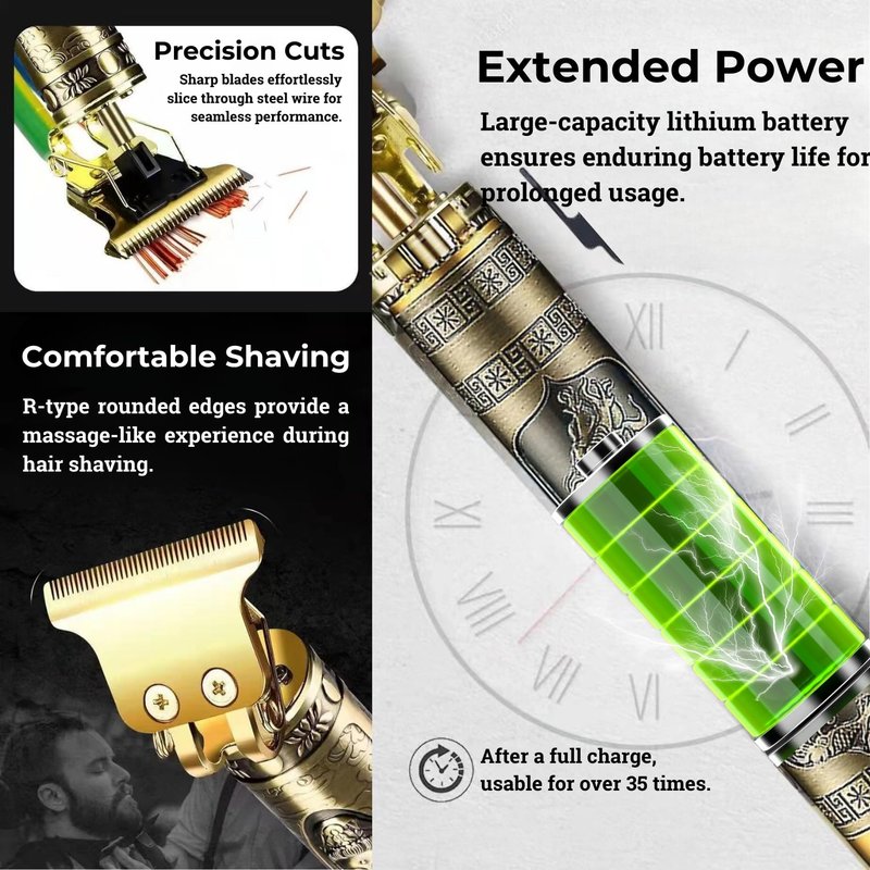 Introducing the Genkigold Hair Trimmer for Men, a cutting-edge grooming solution designed to redefine your hairstyling experience. Achieve precision haircuts with zero-gap technology, delivering professional-grade results from the comfort of your home. The cordless convenience of our rechargeable trimmer ensures unparalleled freedom during your grooming sessions, whether at home or on the go. Inspired by timeless aesthetics, our trimmer comes in three unique designs—Gold Buddha, Obsidian Gold, and Gold Dragon—adding a touch of sophistication to your grooming routine. Compact and portable, it's the ideal travel companion for maintaining your style wherever life takes you. Confidence is key, and our professional-grade trimmer empowers you to craft your desired look effortlessly. No compromises, just exceptional grooming performance. The Genkigold Hair Trimmer is not just a tool; it's a comprehensive grooming kit, offering versatility to switch between styles with ease. Elevate your grooming routine with the Genkigold Hair Trimmer—a perfect blend of precision, style, and convenience. Your journey to a groomed and confident appearance starts here.