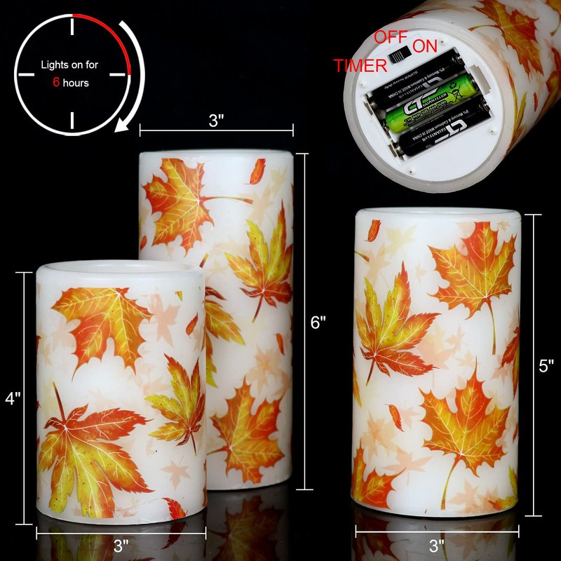 GenSwin Maple Leaf Flickering Flameless Candles Battery Operated with 6 Hours Timer, Real Wax Led Pillar LED Candles Christms Wedding Decoration