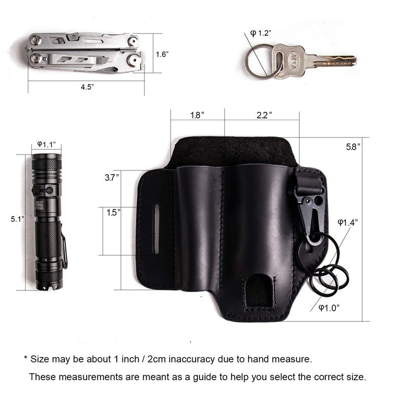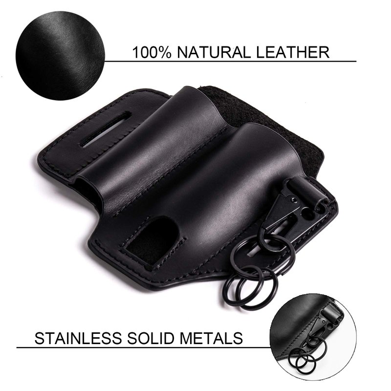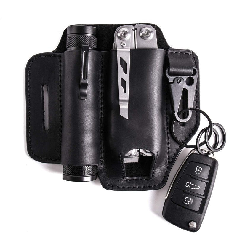 - [ Leather Multitool Sheath ] An all in one practical leather sheath for EDC multitools. With specific sheath for most of leatherman multitools also with a flashlight sheath and key holder.