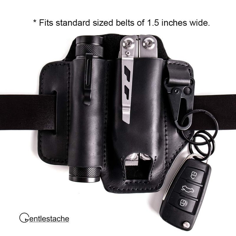Gentlestache Leather Sheath for Leatherman Multitool Sheath EDC Pocket Organizer with Key Holder for Belt and Flashlight Sheath Multitool Pouch Black Color