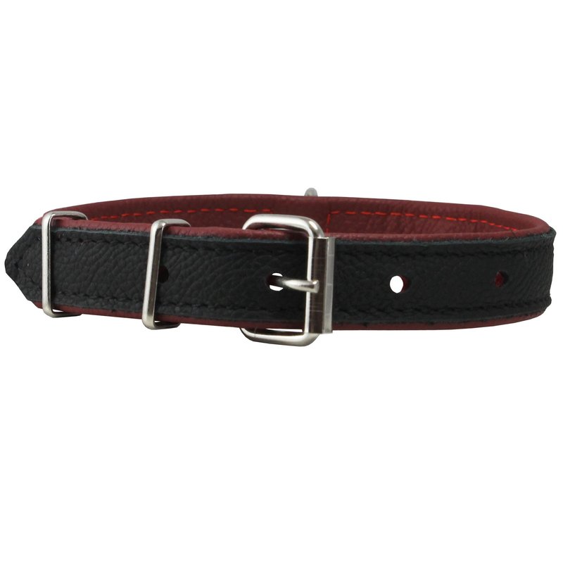 Genuine Black Leather Metal Bone Studs Soft Black Leather Padded Dog Collar 5/8" Wide. Fits 10"-12" Neck.