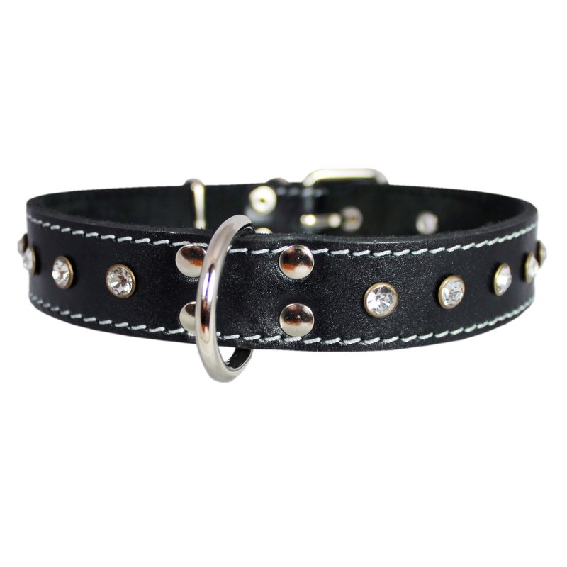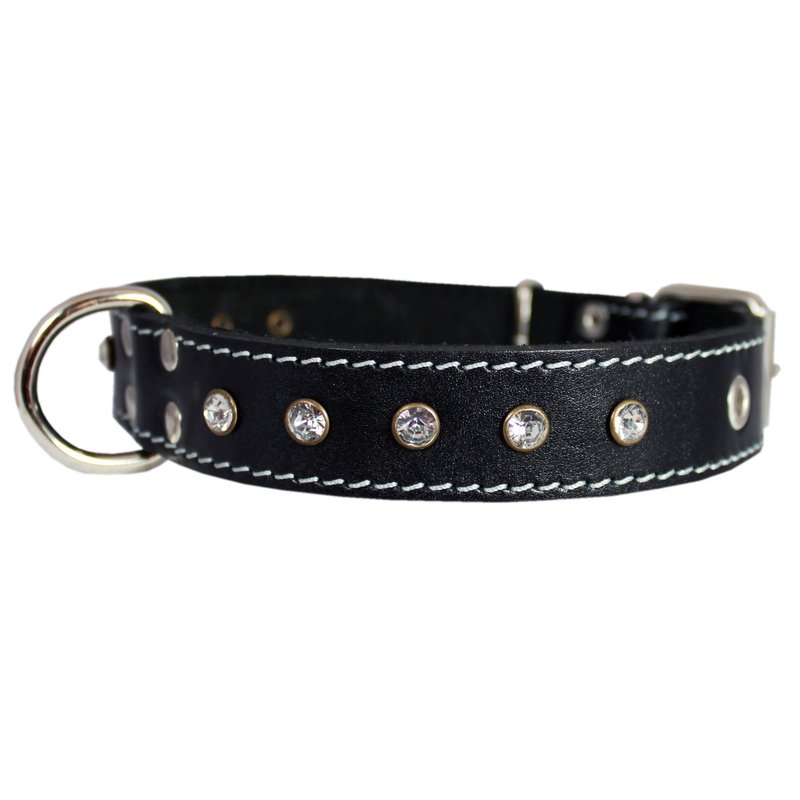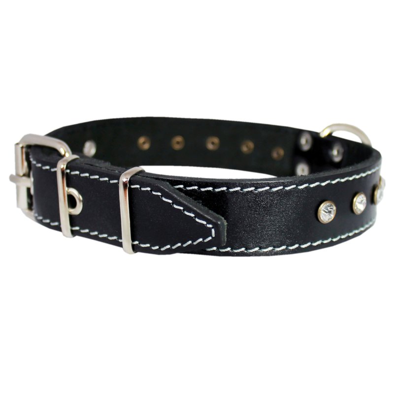 - Made of high quality genuine leather beautiful dog collar with one row of crystals