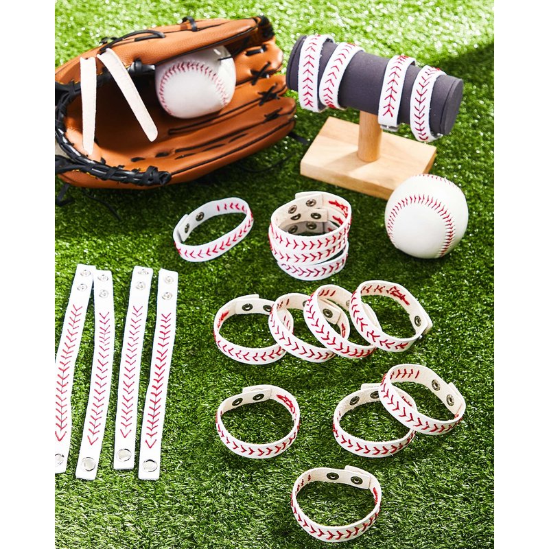 Genuine Leather Baseball Bracelet Baseball Wristbands Baseball Gifts for Boys Men Women Girls Baseball Players Sports Team (20 Pcs)