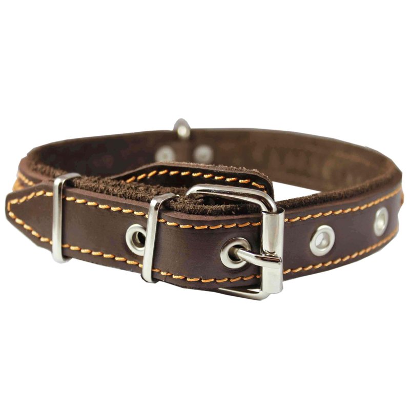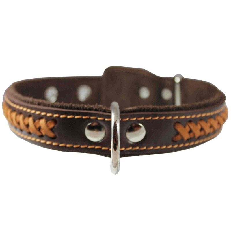 Comfort meets high quality and durability in this fabulous braided dog collar from DML made of high quality genuine leather. Elegant braid, soft suede padded, stitched all around design. Perfect collar for daily use, made to last. Overall length 22.5", 1.25" wide, will fit 16"-20.5" - please measure dog's neck for fit before you order.