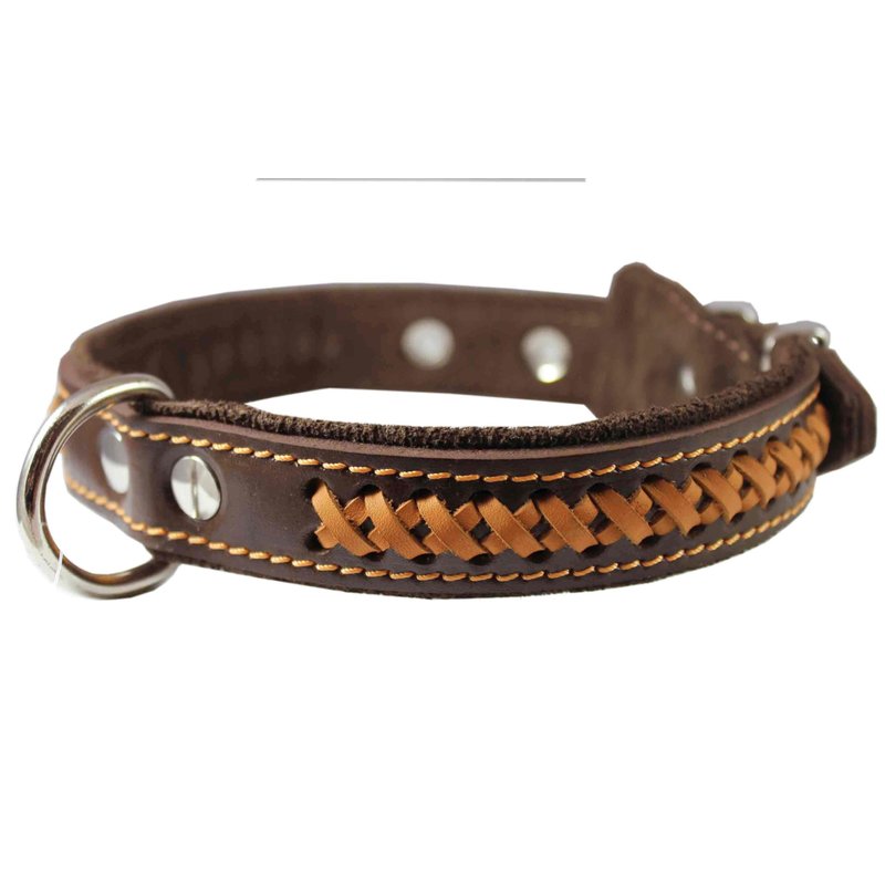 Genuine Leather Braided Dog Collar, Brown 1.25" Wide. Fits 16"-20.5" Neck.
