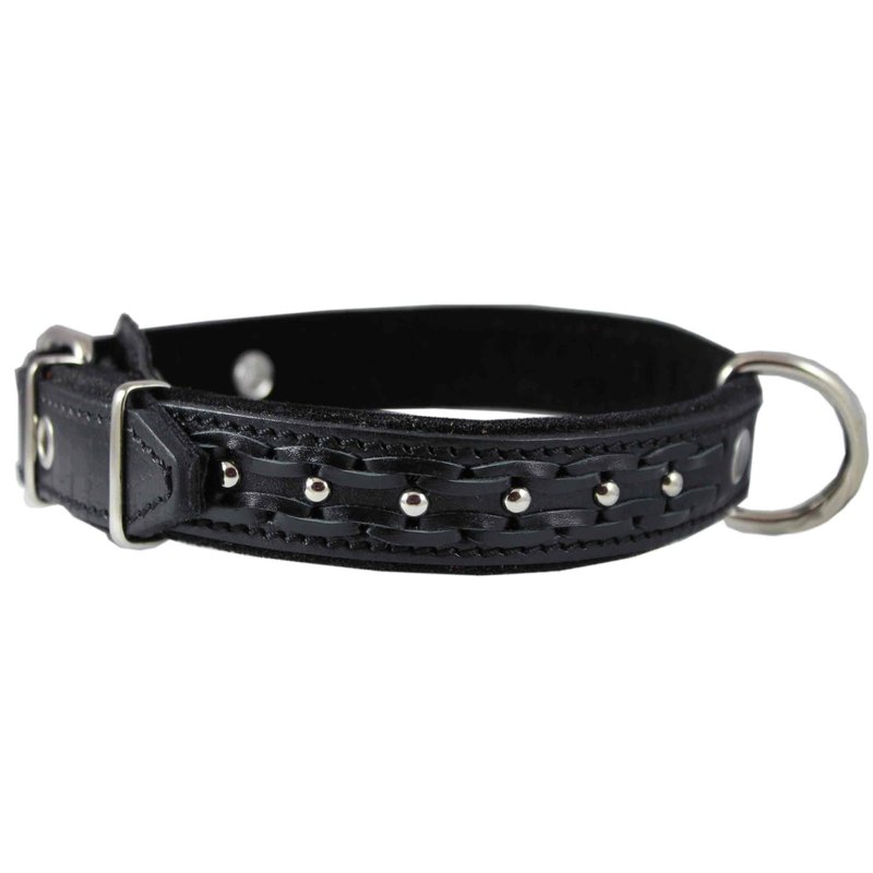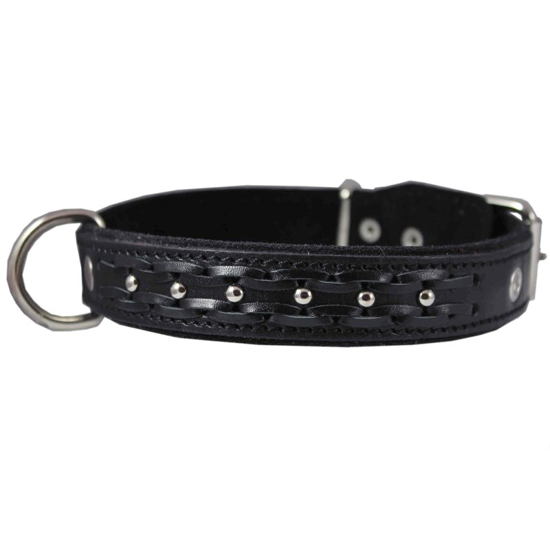 Genuine Leather Braided Studded Dog Collar, Black 1.25" Wide. Fits 16"-20.5" Neck.