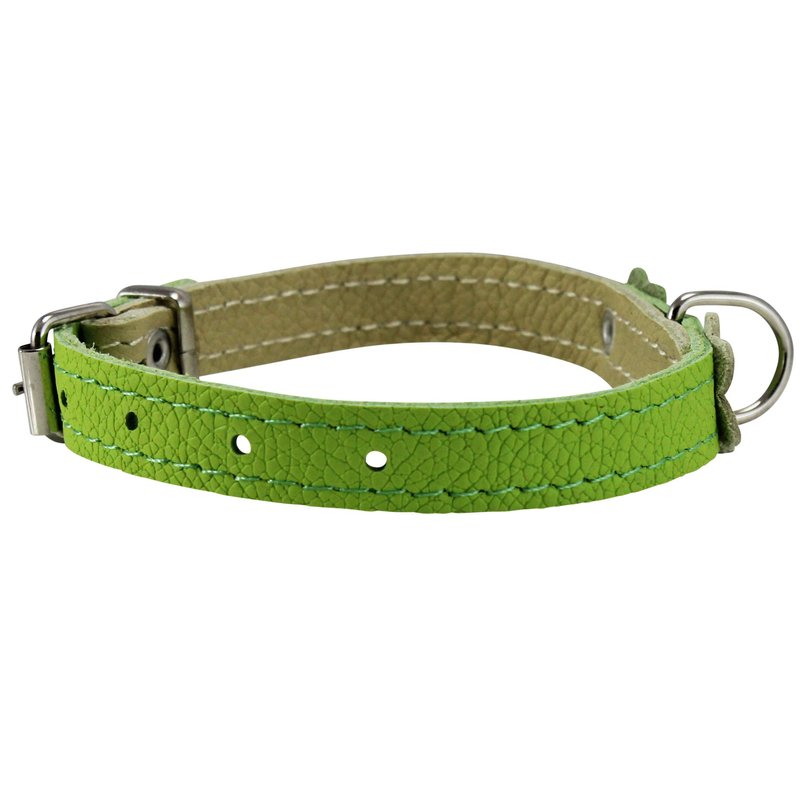 Genuine Leather Designer Dog Collar, Daisy, Studs. 11" x1/2" Wide. Fits 8"-10" Neck, Yorkshire Terrier, Puppies