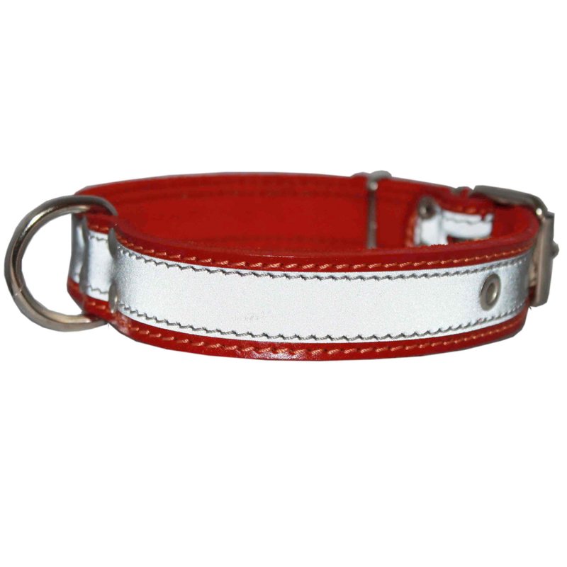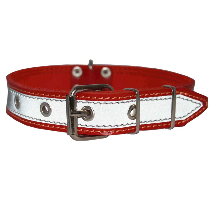 - Very comfortable and pliable dog collar made of thick genuine leather with stitched on reflective stripe - effective way to enhance visibility at night.