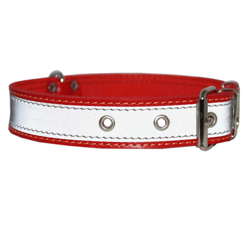 - Very comfortable and pliable dog collar made of thick genuine leather with stitched on reflective stripe - effective way to enhance visibility at night.