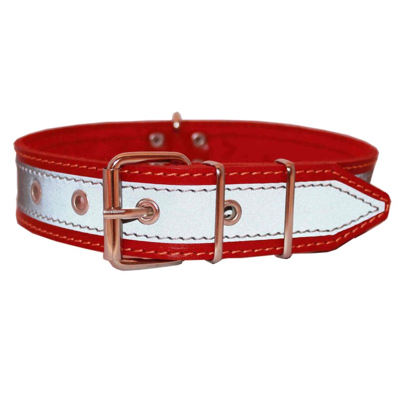 - Very comfortable and pliable dog collar made of thick genuine leather with stitched on reflective stripe - effective way to enhance visibility at night.