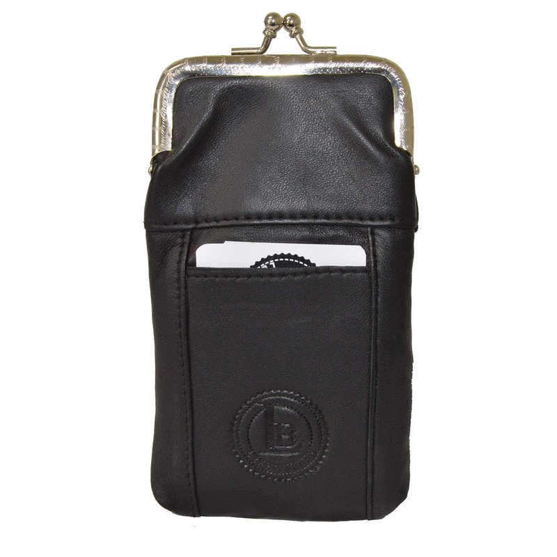 Genuine Leather Slim Cigarettes Case Holder Pack Regular or 100's & Lighter Pocket with Metal Twist Clasp, Black