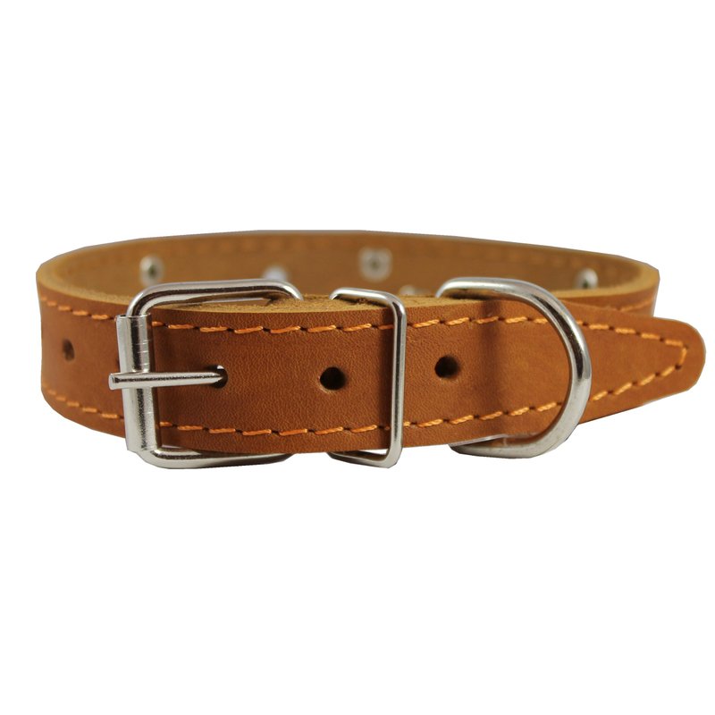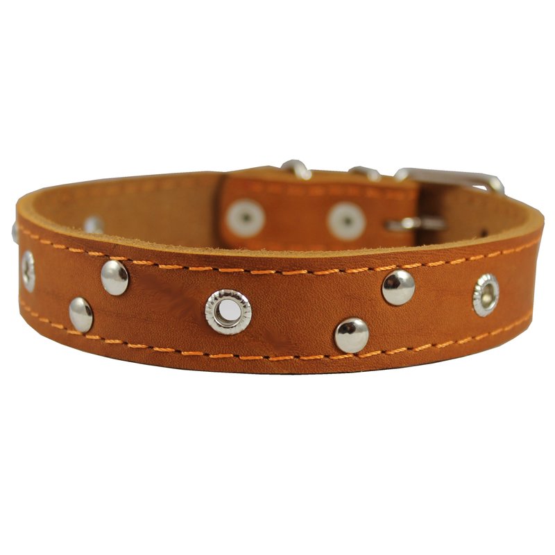 Genuine Leather Studded Dog Collar, Tan, 1" Wide. Fits 13"-17.5" Neck Size