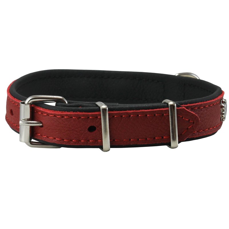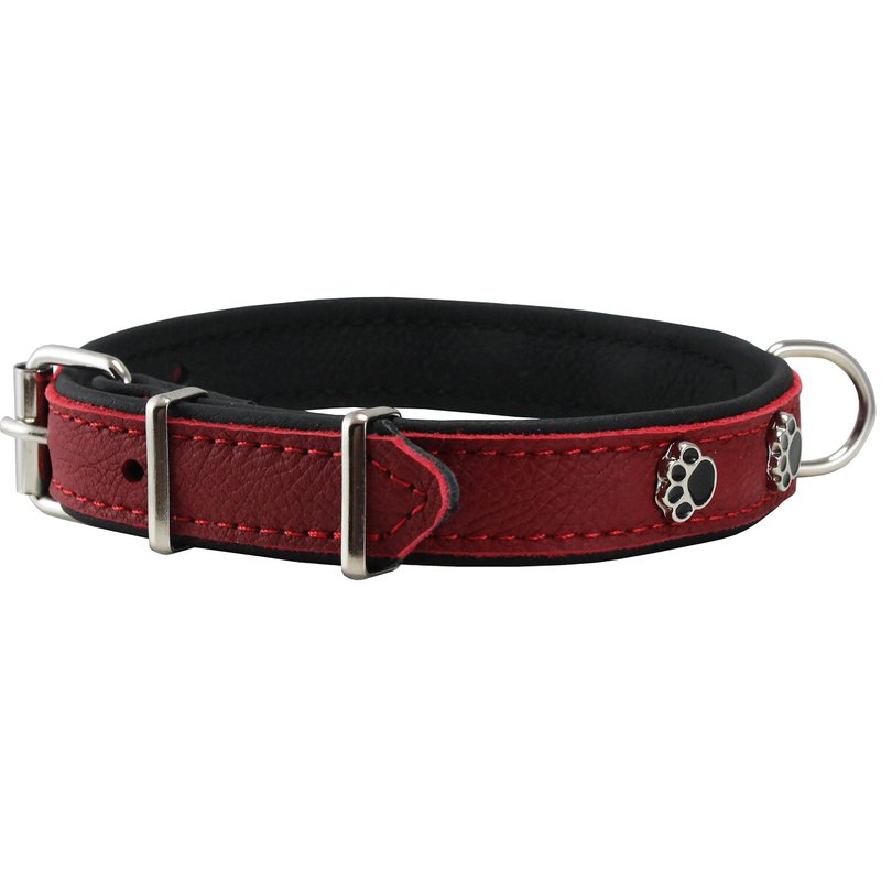 Genuine Red Leather Metal Paw Studs Soft Red Leather Padded Dog Collar 5/8" Wide. Fits 10"-12" Neck.