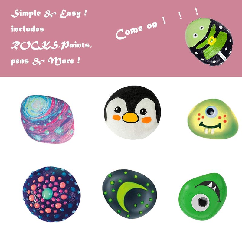 - Enhance children's unlimited creativity:Rock painting for kit and adults, and a good rock painting kit for teenagers. Provide exciting activities to improve painting skills, explore creativity, express emotions and enhance artistic skills; after the production is completed, by showing the child's masterpiece, the child's self-confidence in the paint rock craft kit can be enhanced. Children painting rocks can also participate in school art projects and handicraft activities.