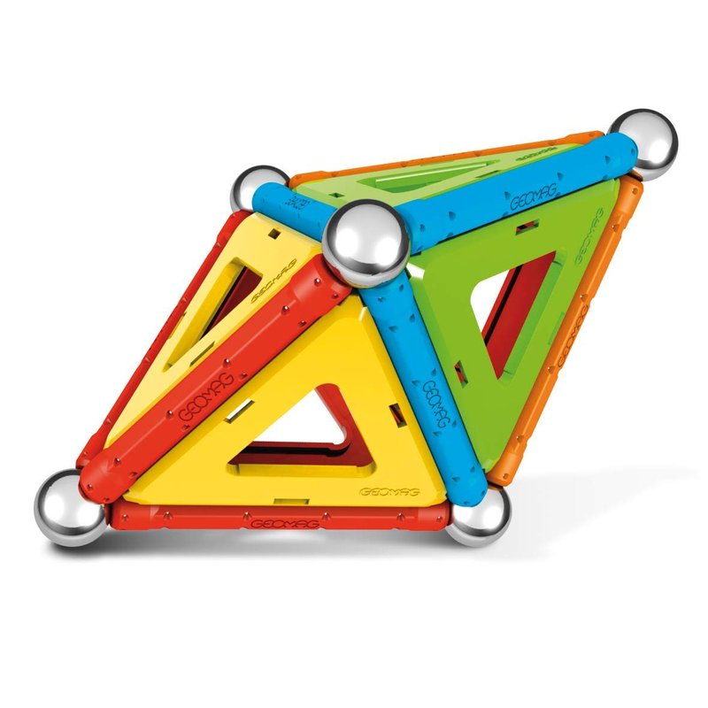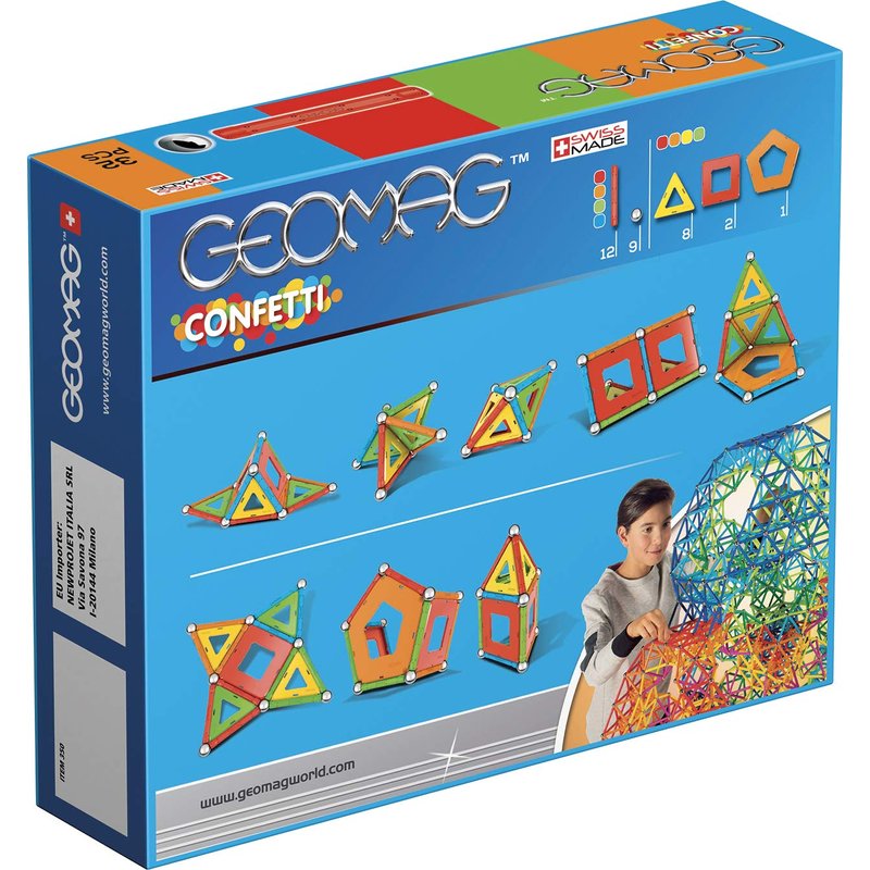 • The Geomag confetti range has been completely updated: colors, box design and number of pieces have all changed. The colorful base platforms make the structures more stable.