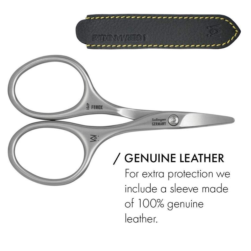 These scissors are NOT mass-produced. All GERmanikure scissors are hand-assembled with hand-hammered blades, then manually sharpened by Solingen artisans. Each screw is set by hand with a screwdriver to ensure proper tension. Our unique, beveled joint minimizes friction and reduces wear, providing a flawless, shearing cut. Made of FINOX high carbon stainless steel and tempered to 52 Rockwell hardness, these scissors will likely be the last pair you will ever need.