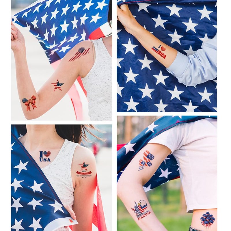 - 【Premium Material】These Independence Day tattoo stickers are made of eco-friendly ink, which are safe without irritation, non-toxic and odorless. They are waterproof and durable. It will last longer time if you leave them along from water and avoid rubbing the tattoo hard.