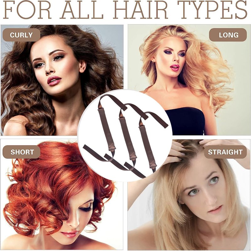 3 PCS heatless hair curling rod headband for all hair types easy to use comfortable satin heatless hair curlers Specification: Item Type: Heatless hair curling rod Color: Brown Material: Satin and soft material Package Include: 3 x heatless hair curlers with long ribbon Features: Easy to Use and be suitable for most length and types of hair Upgraded, soft and comfortable material, no damage for your hair Lightweight and easy to carry. You can use it when you are studying or sleeping The latest and trendy heatless hair curler makes you have healthier and more fashionable hairstyle