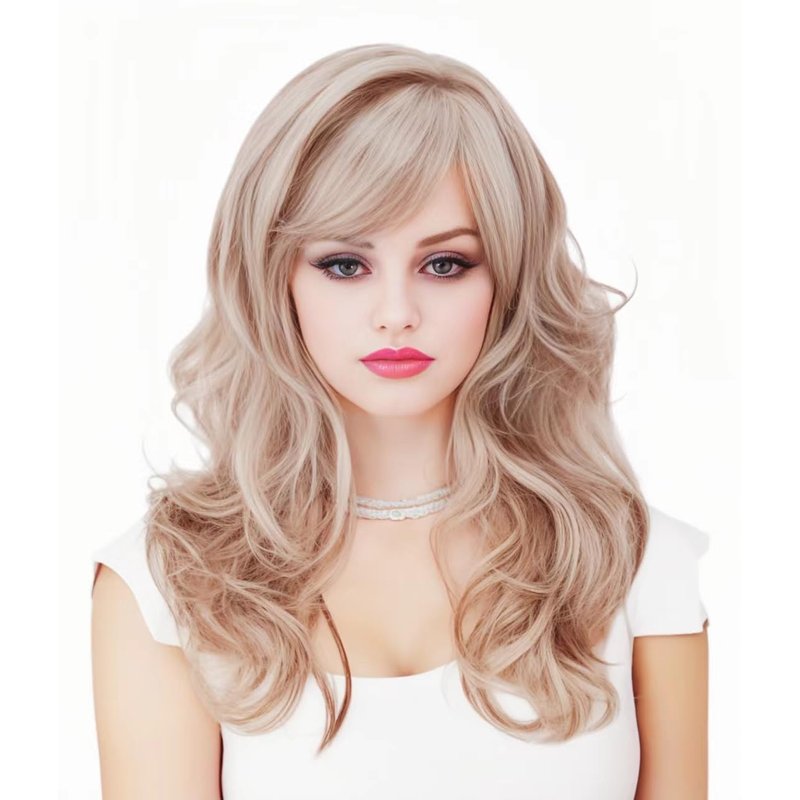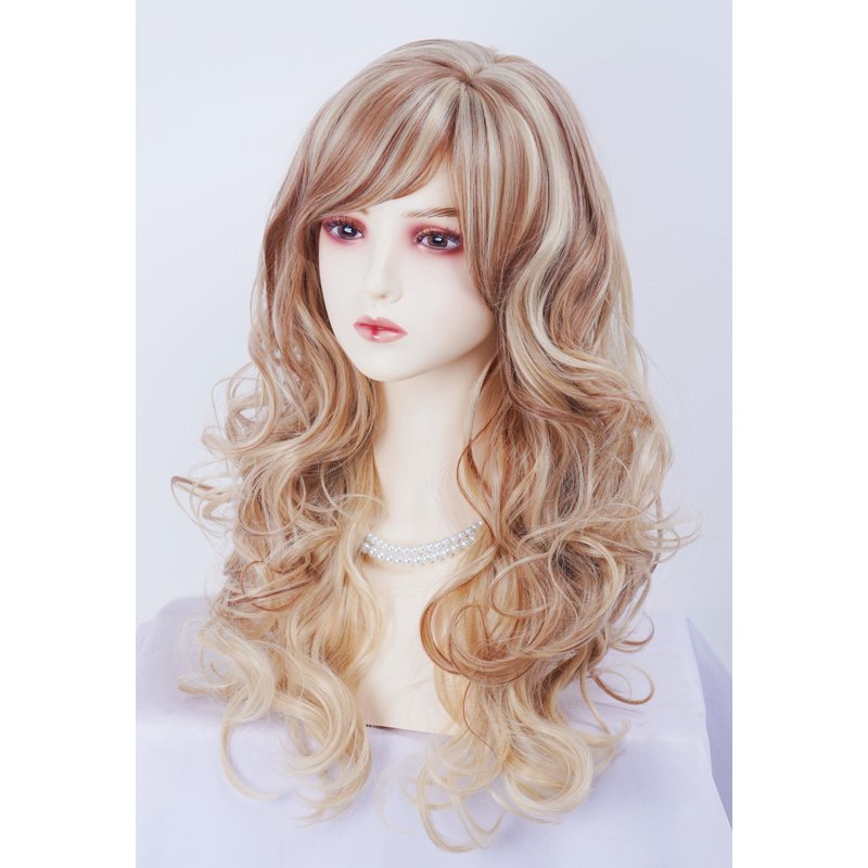 - 【NATURAL STYLE】: This long curly blonde wig features bangs and layers for a voluminous look resembling natural curly hair with movement.