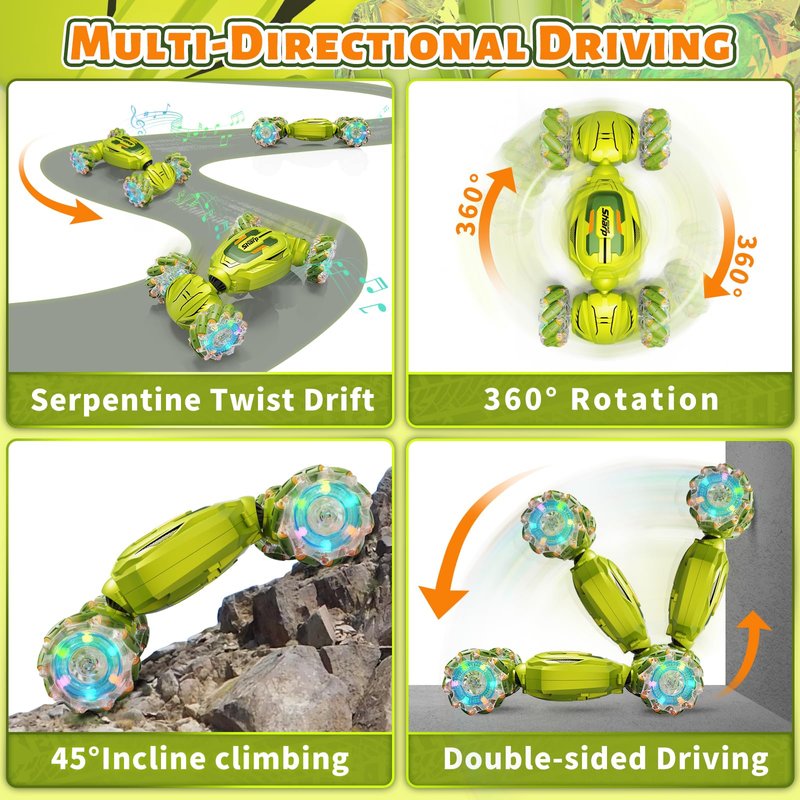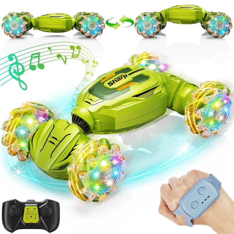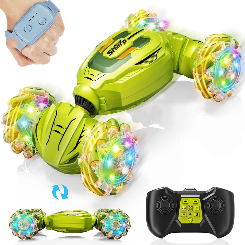 - Magical Gesture Sensing Fun: Our gesture sensing RC stunt car has two control modes: fun gesture sensing and sensitive remote control, both of which need extra self-prepared batteries. Putting on the sensing watch, you can effortlessly master the toy car with impressive moves. It’s a cool remote control car for boys 8-12, which adopt 2.4GHz transmission technology, support quick response to gesture control