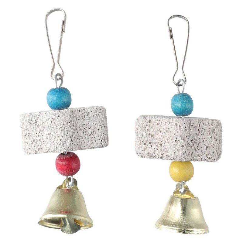 GetCoupon Parrot Colorful Mirror Teeth Grinding Stone Set, 2 Pcs Hens Hanging Swing Mirror Toys with Bells and Beak Grinding Molar Stones