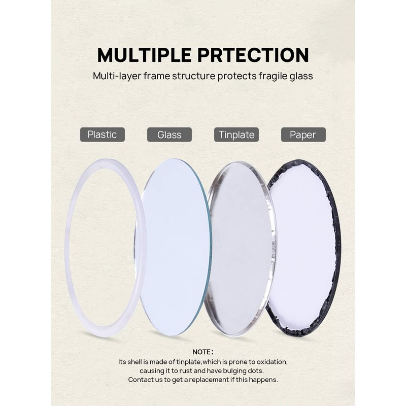 - PORTABLE SIZE: 2.5 inches, 0.16 inches thickness small circle glass mirror fits your bag, purse or even your pocket