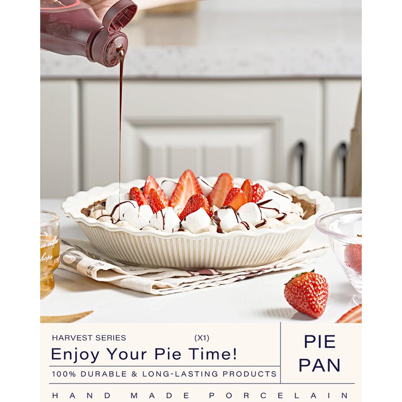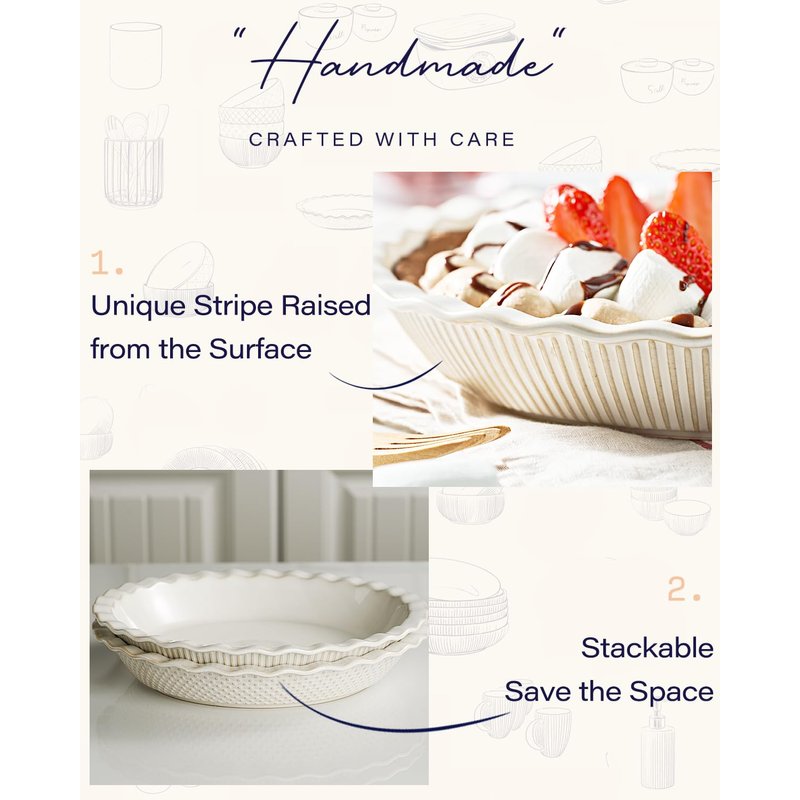 - 【Versatility】The ceramic baking dish is versatile enough to be used for various types of pies, quiches, or other baked goods, accommodating different recipes and sizes