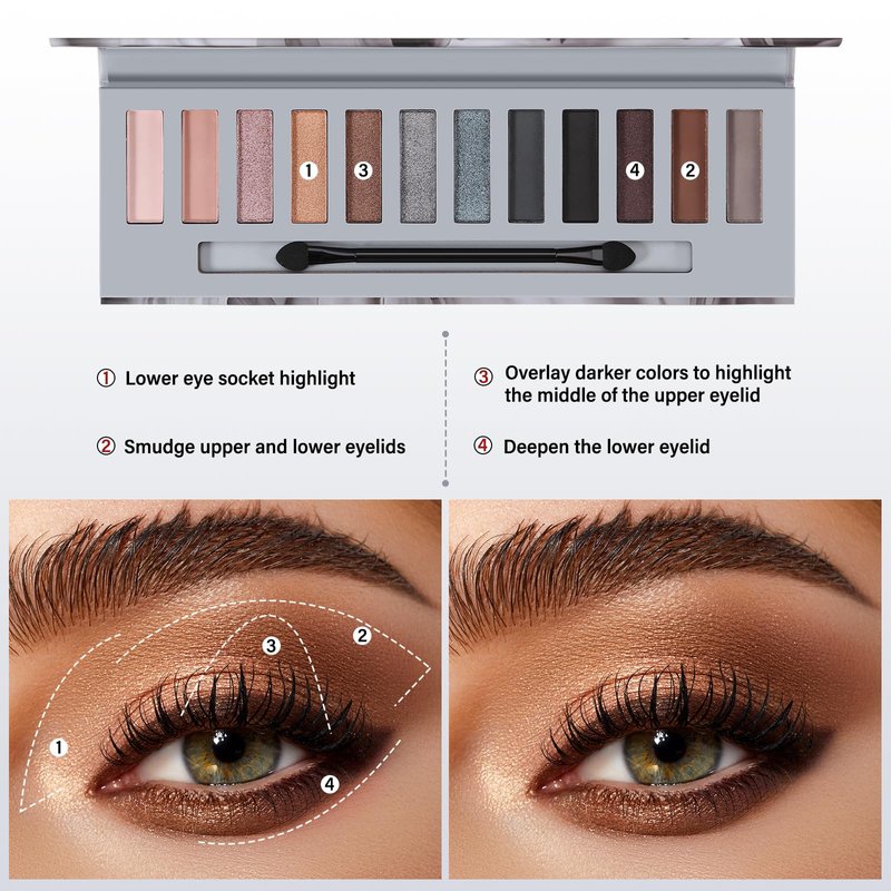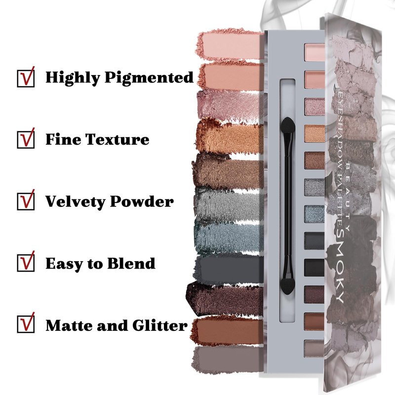 GEUUFEA 12 Colors Smoky Eyeshadow Palette, Dark Blendable Eye Shadow Palette, Matte Shimmer Eye Makeup Powder for a Bold Retro Look