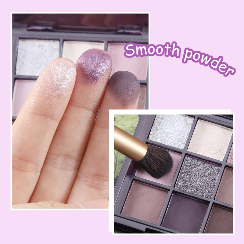 GEUUFEA Purple Eyeshadow Palette-9 Colors, Blendable Matte and Shimmers Pigmented Eye Shadow Powder, Multiuse Makeup Pallet, Easy to Use