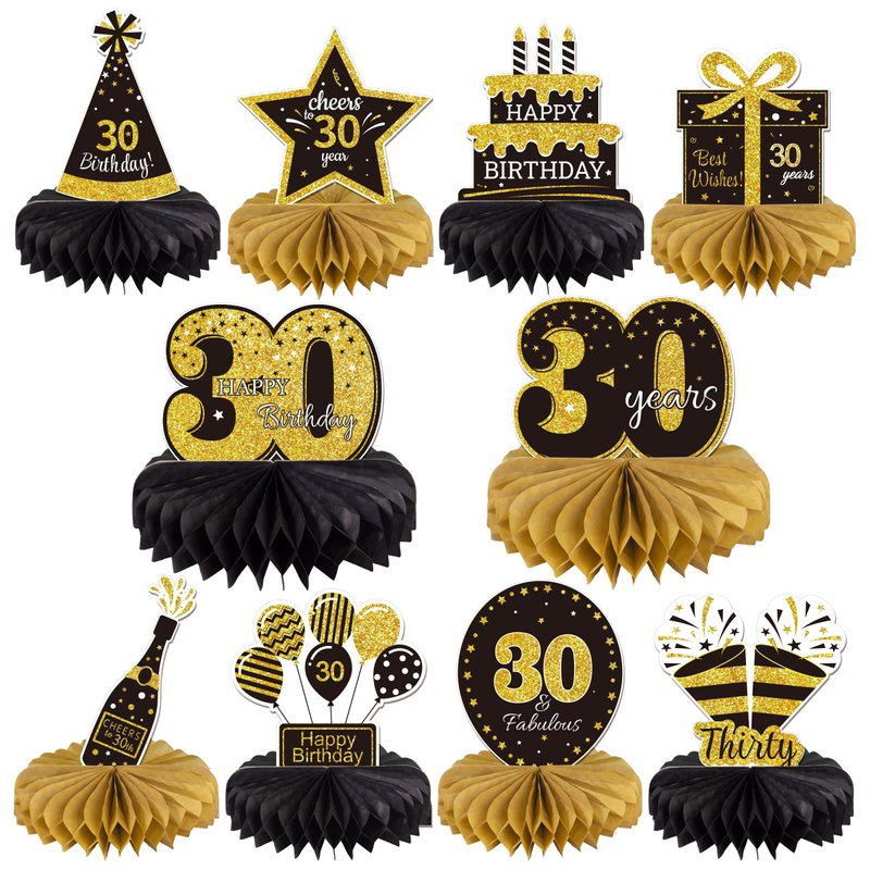 Gexolenu 10 Pcs 30th Birthday Honeycomb Centerpieces Gold Black Cheers to 30 Years Birthday Centerpieces Tables Toppers for 30th Birthday Decorations 30 Fabulous Birthday Party Decorations Supply