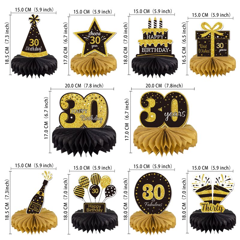 - ✅Package included: 10 Pcs Happy Birthday Honeycomb Centerpieces, it contains 10 patterned cardboards and 20 paper honeycombs,and matching lanyards.