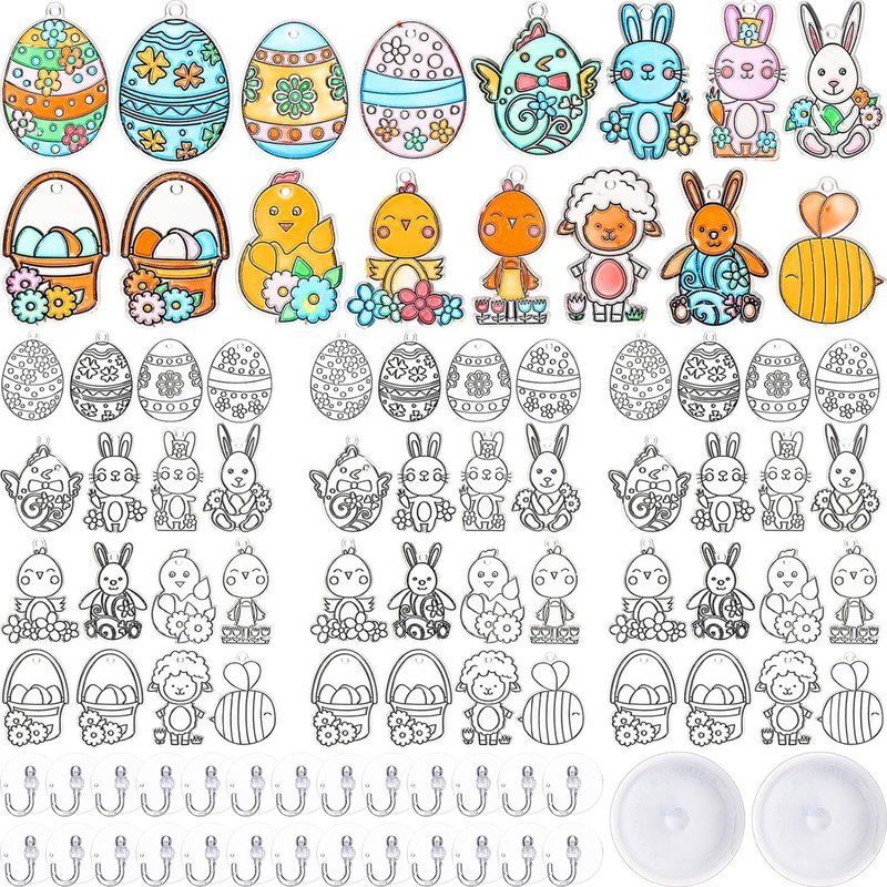 - What You Will Receive: the Easter window art kit contains 64 pieces of suncatchers, 64 pieces of sucker hooks and 2 pieces of elastic cords, which are sufficient to satisfy your decoration needs during festivals