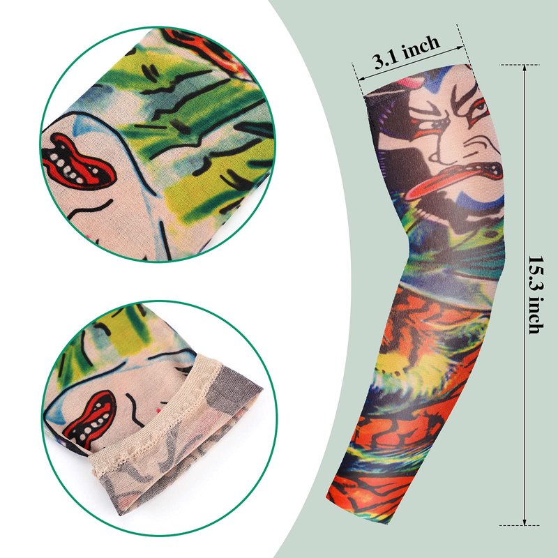 - Package content: 12 different designs of tattoo sleeves, as shown in picture. 1 unit per design and individually packed in bag