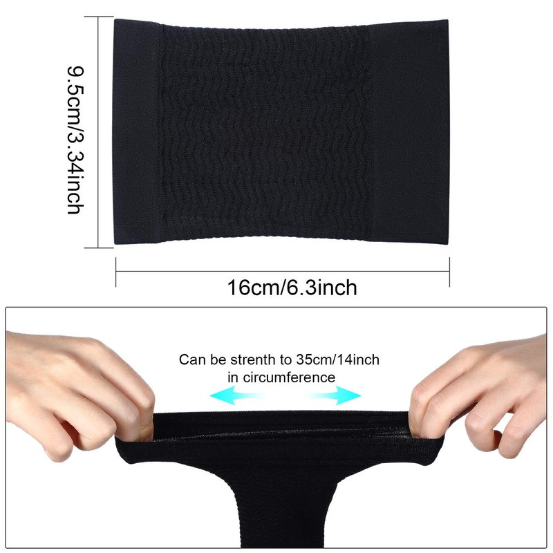 - Thigh slimmer wrap for women: the black thigh wraps are designed to help you show slimmer appearance you desire; Compare to other regular thigh slimming thigh wraps, this thigh sleeves can stretch up to 20% wider, larger and more comfortable to use (suitable for arm circumference 7-14 inches)