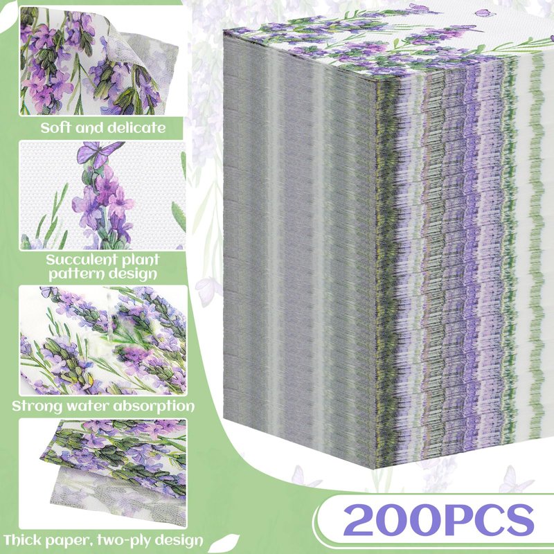 - Package Contents: you will get 200 pieces of paper hand towels with lavender pattern design, in purple colors, enough to meet your various dining table needs, and will decorate your dining table to leave impressive memories on your guests