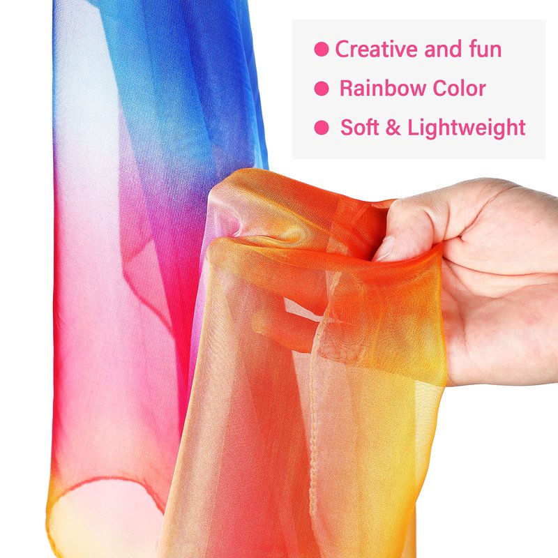 - Creative and fun: 3 style silk rainbow scarfs are suitable for playing dress up, doll blankets, dancing and twirling, capes, preschool activities and songs, Halloween costumes, picnics, traveling, movement, juggling, and more