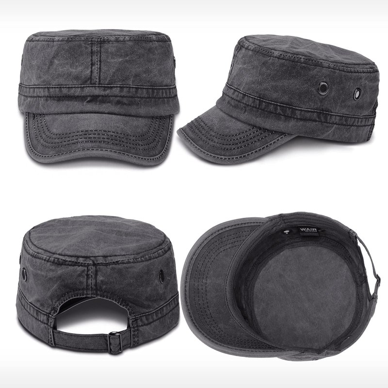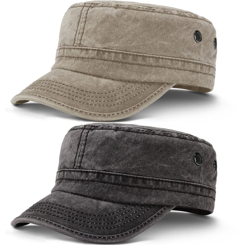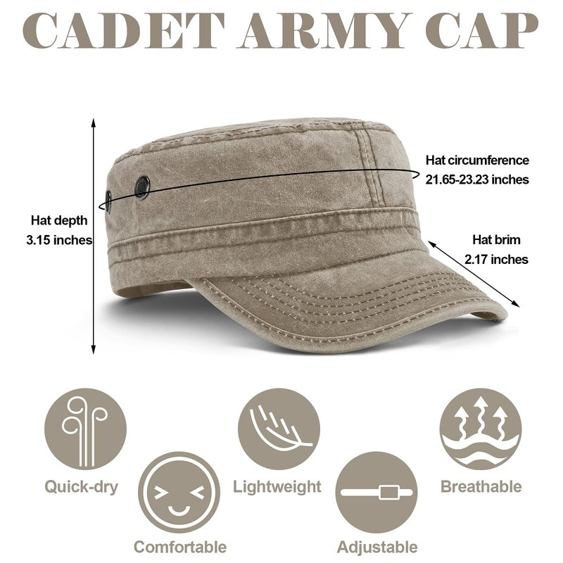 Geyoga Army Cap Cadet Military Hat for Men Women Washed Cotton Flat Top Cap Unisex Baseball Cap Adjustable Military Hat