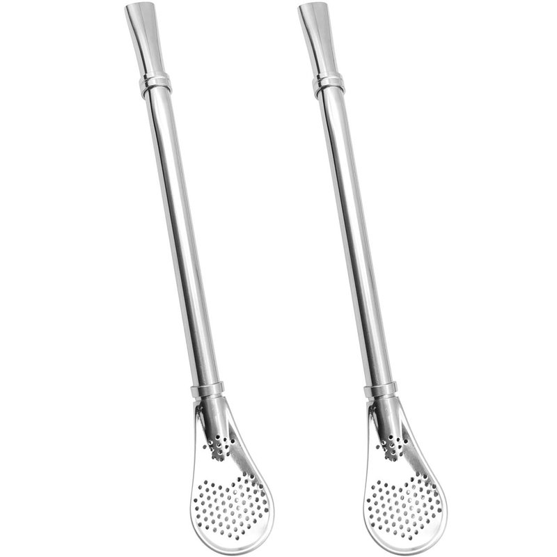 GFDesign Yerba Mate Bombilla Gourd Drinking Filter Straws 304 Food-Grade 18/8 Stainless Steel - Set of 2 with Cleaning Brush - 6.1" Long