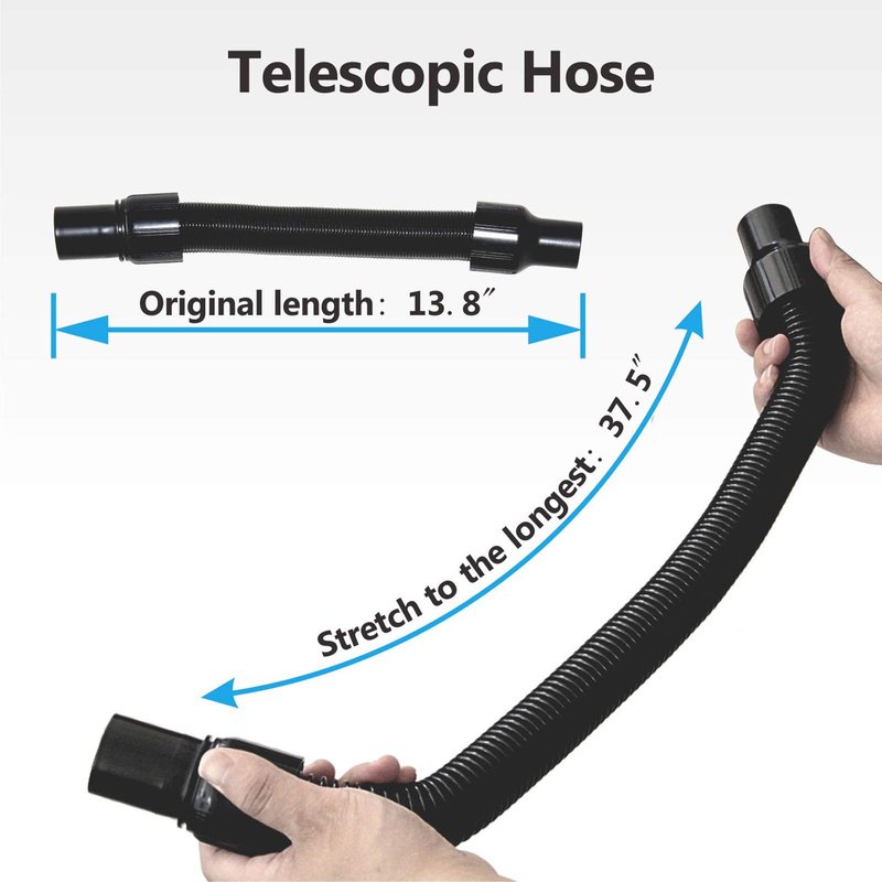 - π Reinforced Extension Hose -It can be extended from 13.8β(35cm) to 37β (95cm). With it, you can keep your vacuum tucked away from your pet, reducing their stress and skittishness. If hose cuff is loose or off, use your left-hand middle finger to slide into the lose cuff to hold the middle ring, use your right hand to screw the hose counter clock wise direction to screw in.