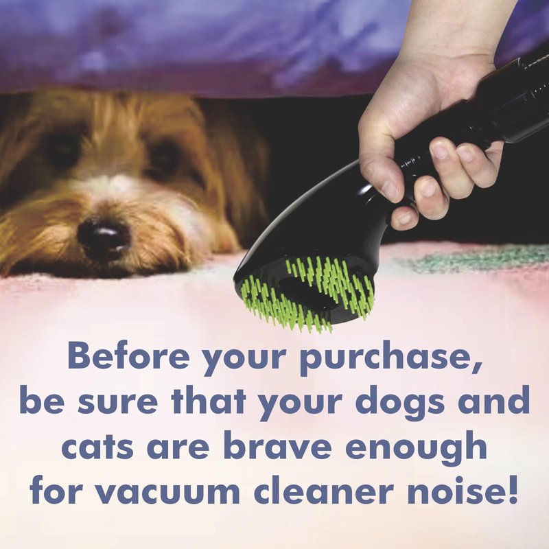 New and Improved Vacuum Grooming pet brush for dogs and cats (cepillo perros) is a very effective pet grooming vacuum attachment or hair vacuum brush for pets and their owners. As a useful attachment for dog vacuum for shedding grooming, it allows you to vacuum away unwanted hair and allergens while grooming, No flying everywhere. Simply connect the Vacuum Grooming Pet Brush to your vacuum cleaner through the hose or by adding the green + black universal adopter. The soft plastic teeth bring no harm to pet body. The newly longer extension hose will make it easier and flexible at using. Make sure that your pet is brave enough for vacuum cleaner noise before using.