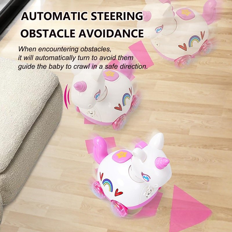 - 【Safe Crawling Assistance】 With built-in automatic obstacle avoidance, this toy smoothly navigates around barriers, guiding your baby safely as they crawl and explore. This feature ensures that your baby remains on a secure path, encouraging independent movement while avoiding potential hazards.