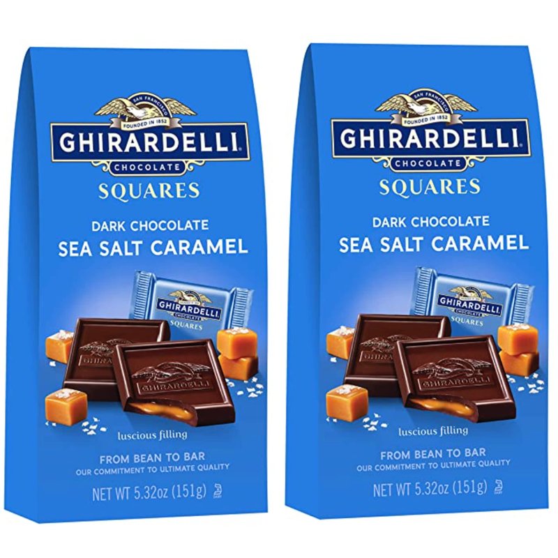 2 - 5.32 oz bags of Ghirardelli Dark and Sea Salt Caramel Squares
