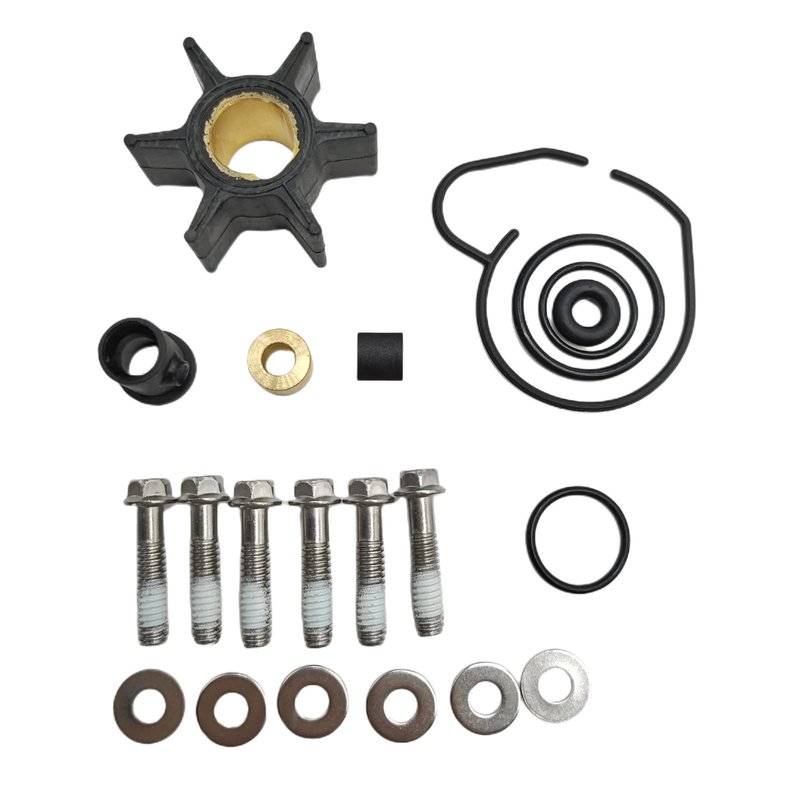 - This johnson boat motor parts Package Contents: 1 PCS Water Pump Housing 1 PCS Water Pump Cup 1 PCS Impeller 1 PCS Gasket 1 PCS Wear Plate 1 PCS Impeller Key 1 PCS Brass Bushing 1 PCS Grommet 6 PCS Bolts with Washer 1 PCS Seal 4 PCS O-Rings