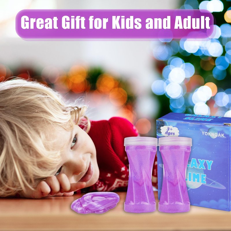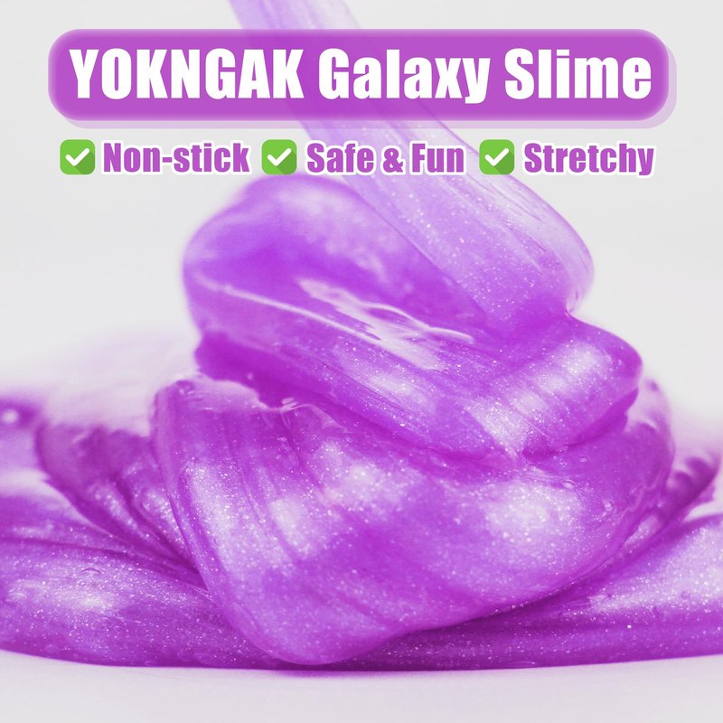 - 2 PACK SLIME: 2 packs wet soft glitter galaxy slime in the package, with around 184g of slime per pack. And the slime is made of high-quality and non-toxic materials, that's non-sticky and safe to kids and easy wash
