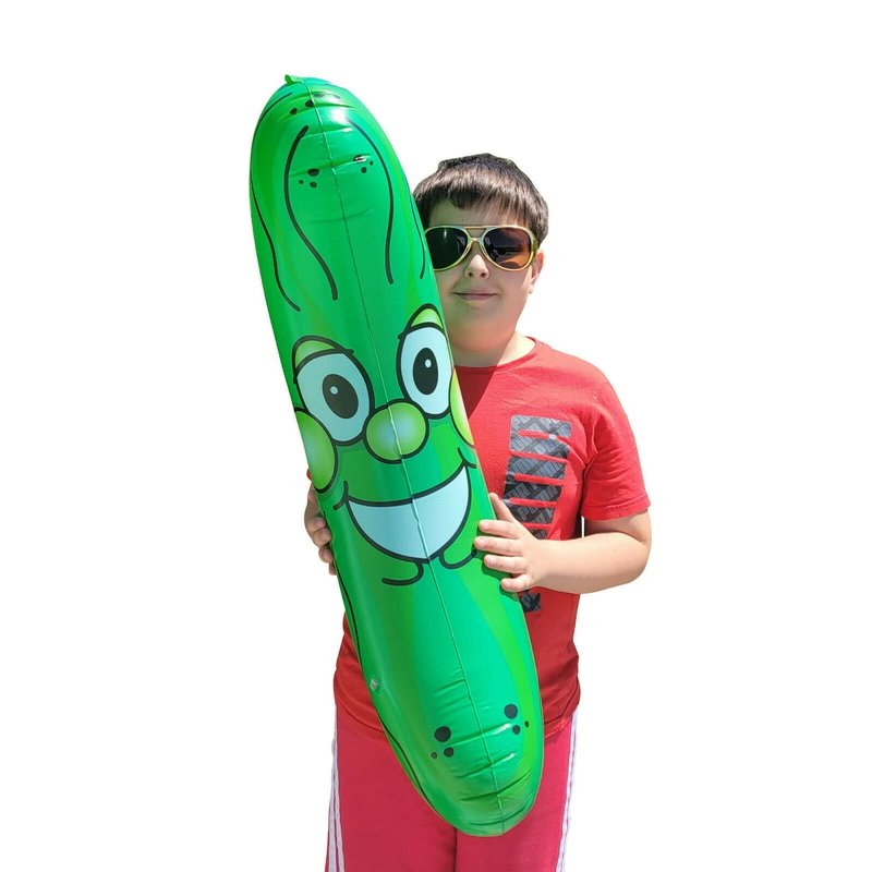 - It's a great attention grabber for kids' birthday parties to! So many uses for this fun novelty blow up. I can't think of anything better than a inflatable pickle to get a good laugh out of someone. Eye-catching carnival item.